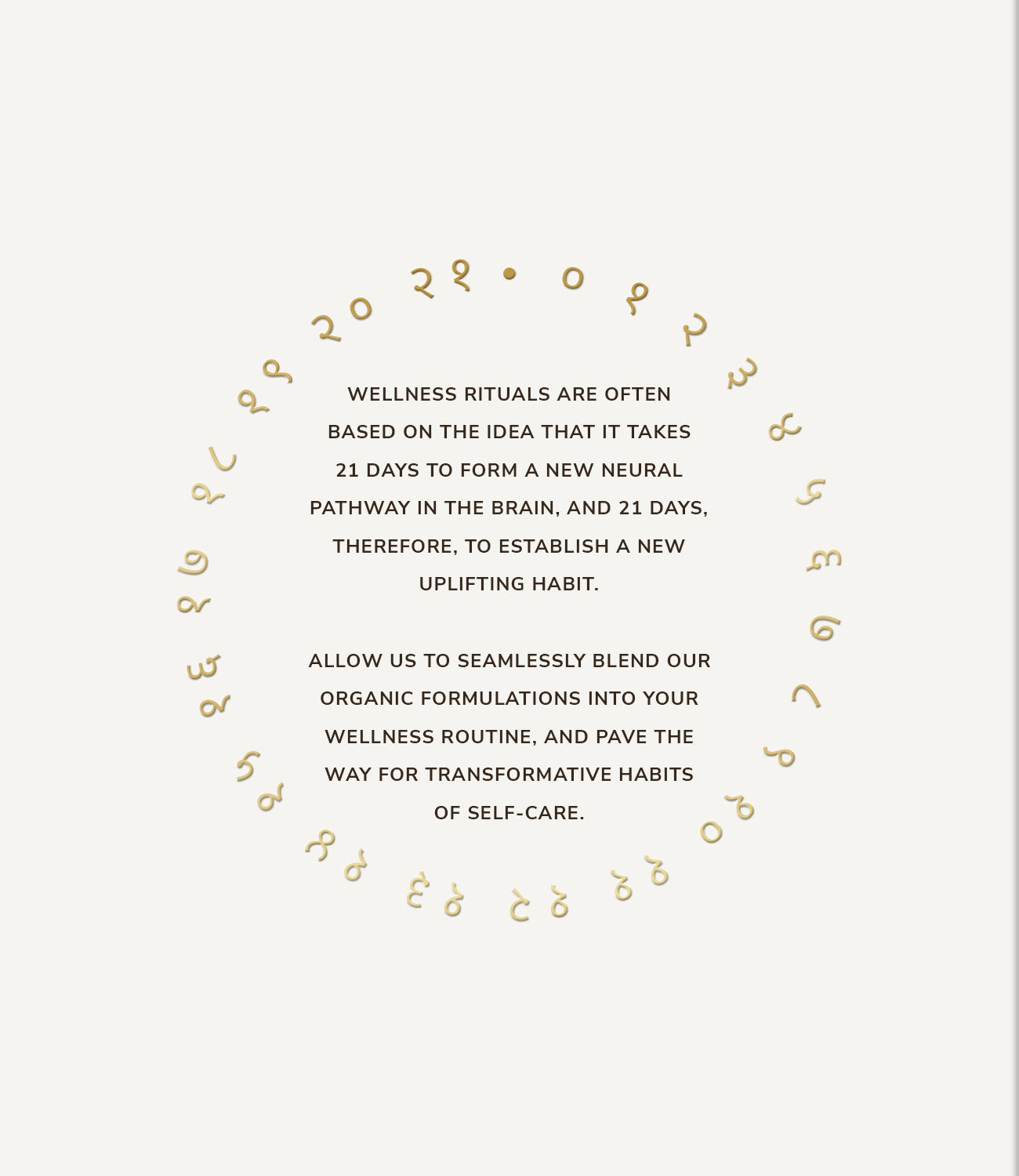 Crafted by the mingling of the natural and cultural repositories of India, we strive to create practices with a universality that we can usher into the world. Our products are imbued with holistic elements that are suitable for all our glorious bodies—men and women, young and old. We are committed to inclusivity. We are committed to you.