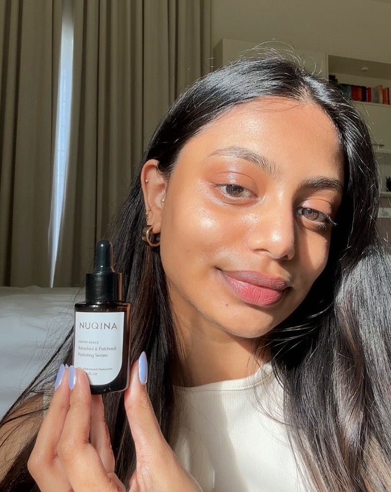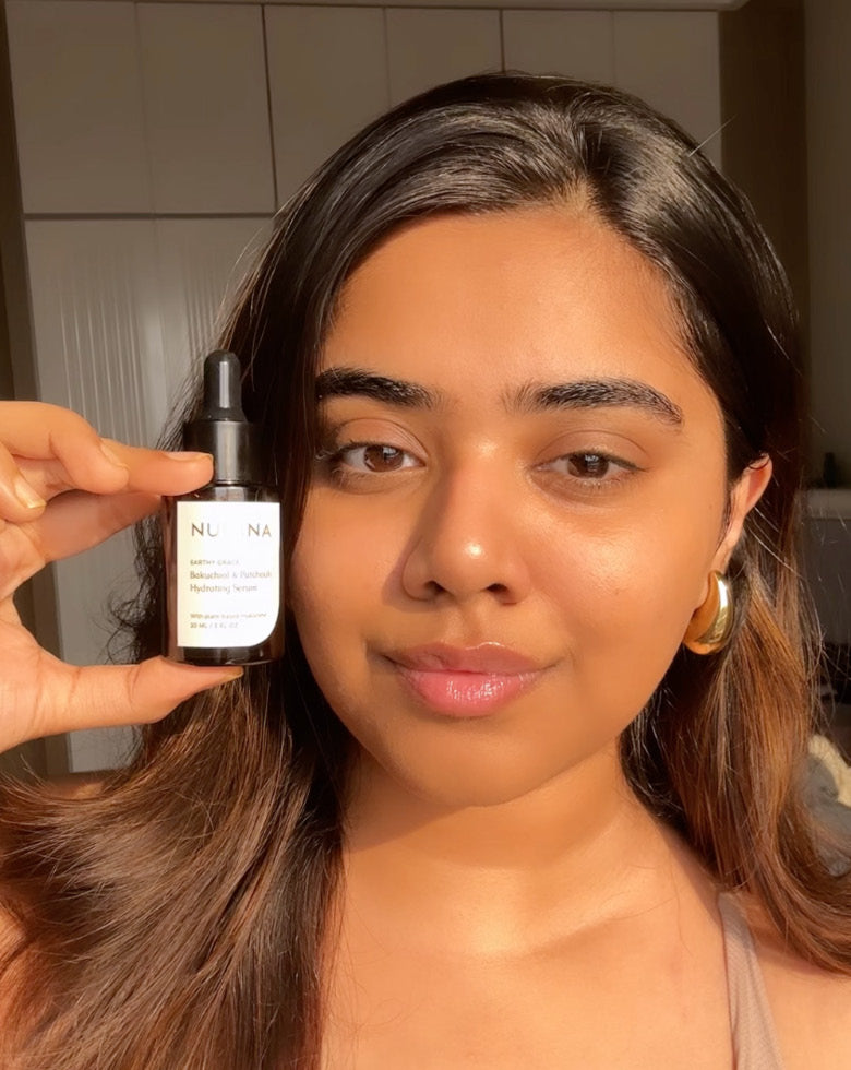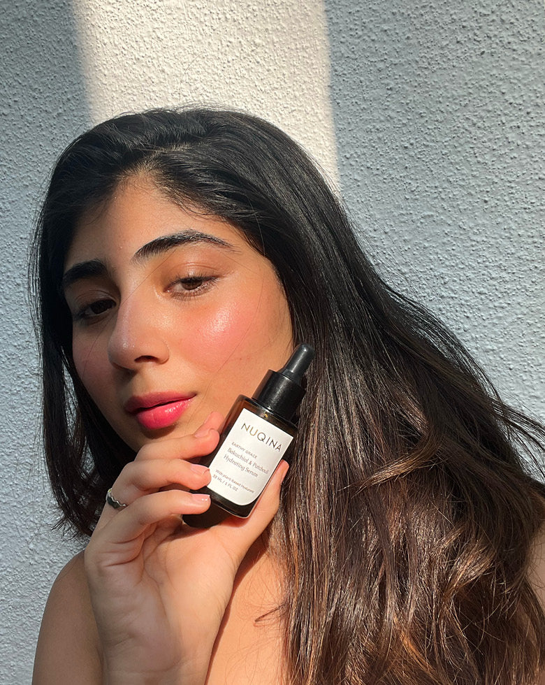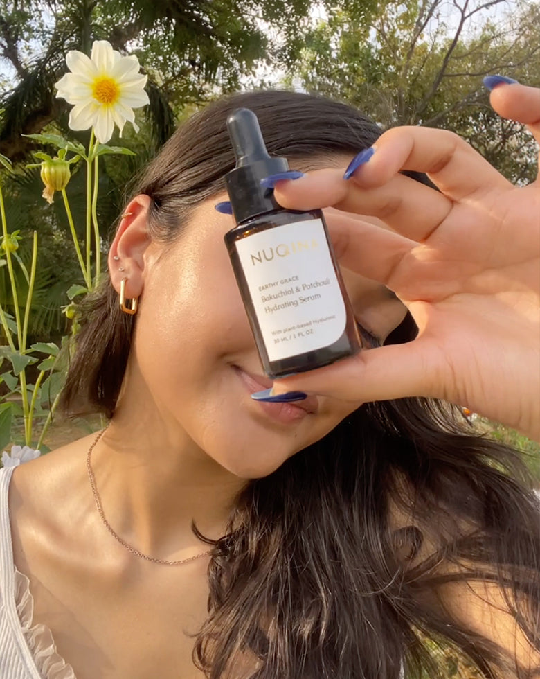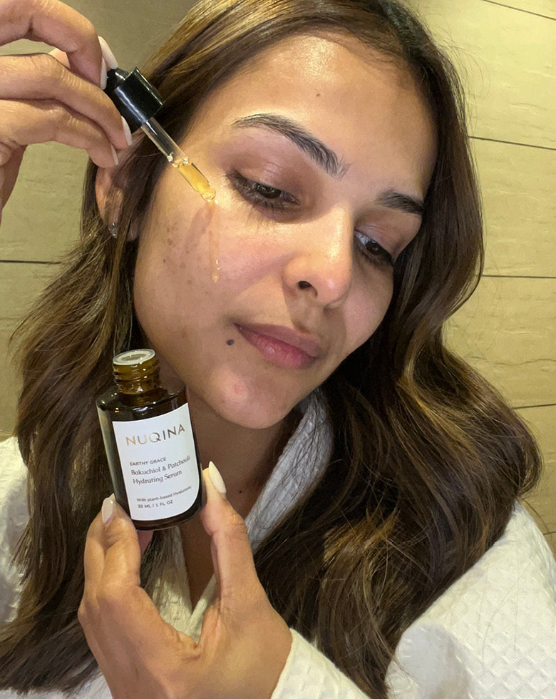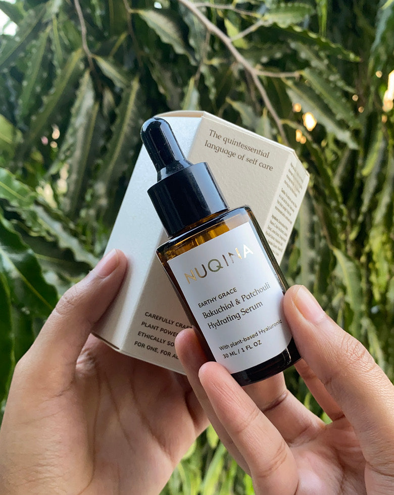 The Bakuchiol & Patchouli Hydrating Serum by Nuqina is also available to shop on Amazon India and Ajio Luxe platforms.